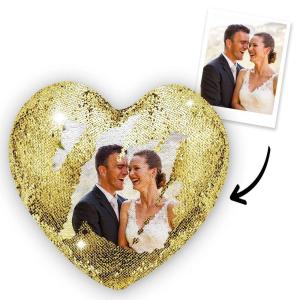 Custom Pillow Magic Heart Shape Sequins Photo Pillow Gift for Momther