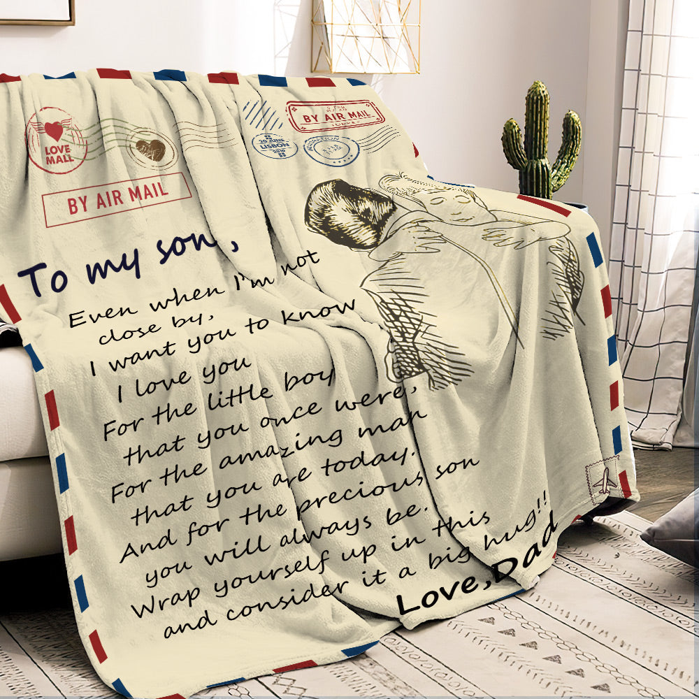 Custom Letter Blanket Personalized Love Air Mail Blanket to Son Hug from Best Dad