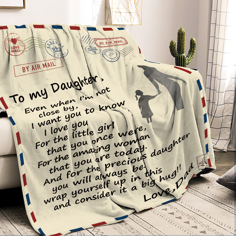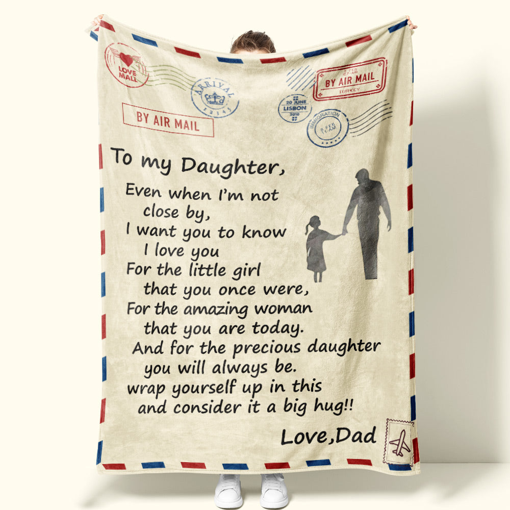 Custom Letter Blanket Personalized Love Air Mail Blanket to Daughter Hold Hands from Love Dad