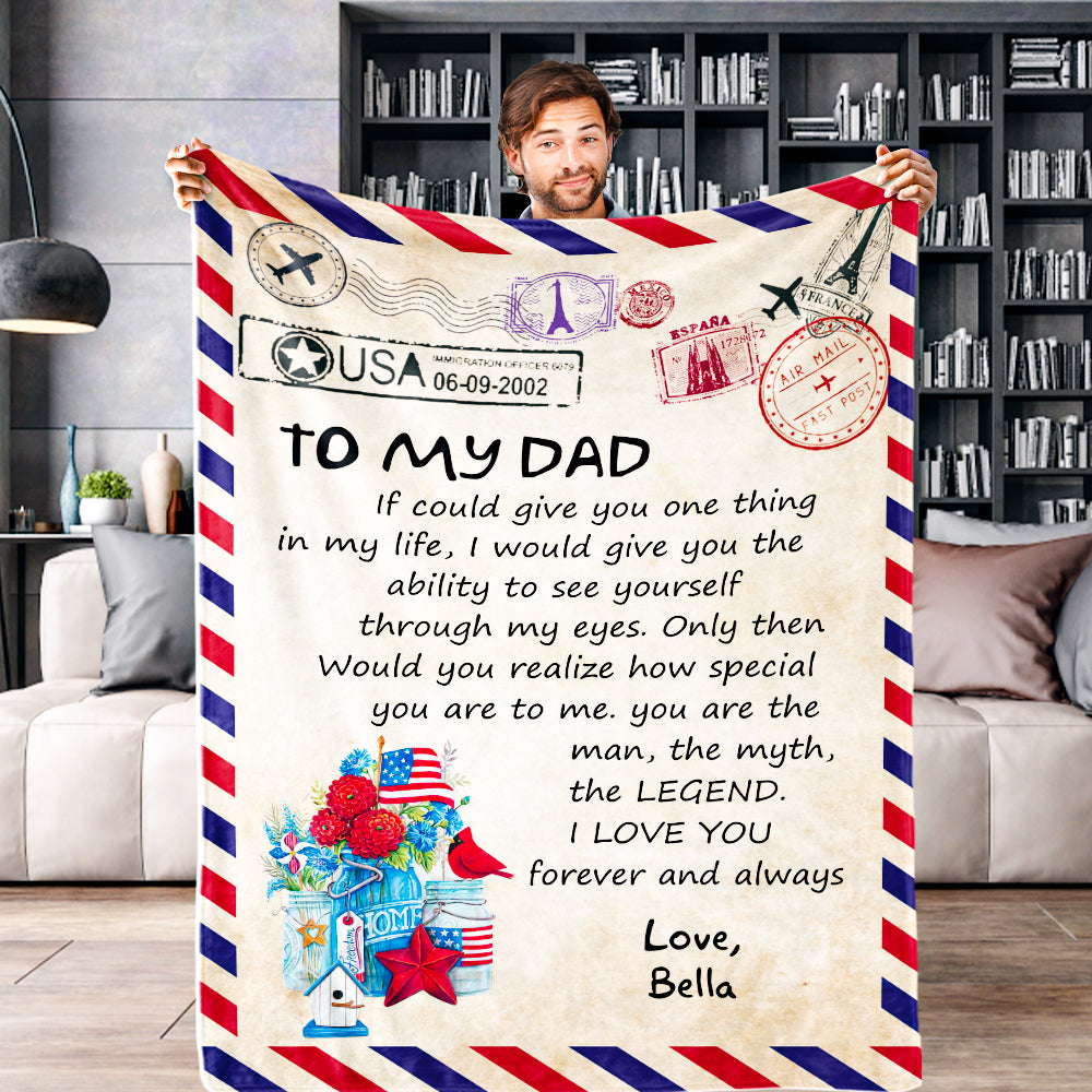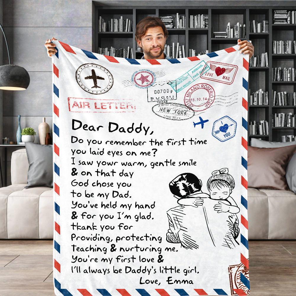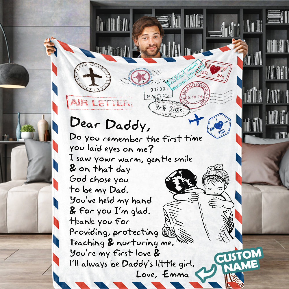 Father's Day Gifts Custom Blanket Letter to My Dad Personalized Name Blanket Air Mail Letter Blanket