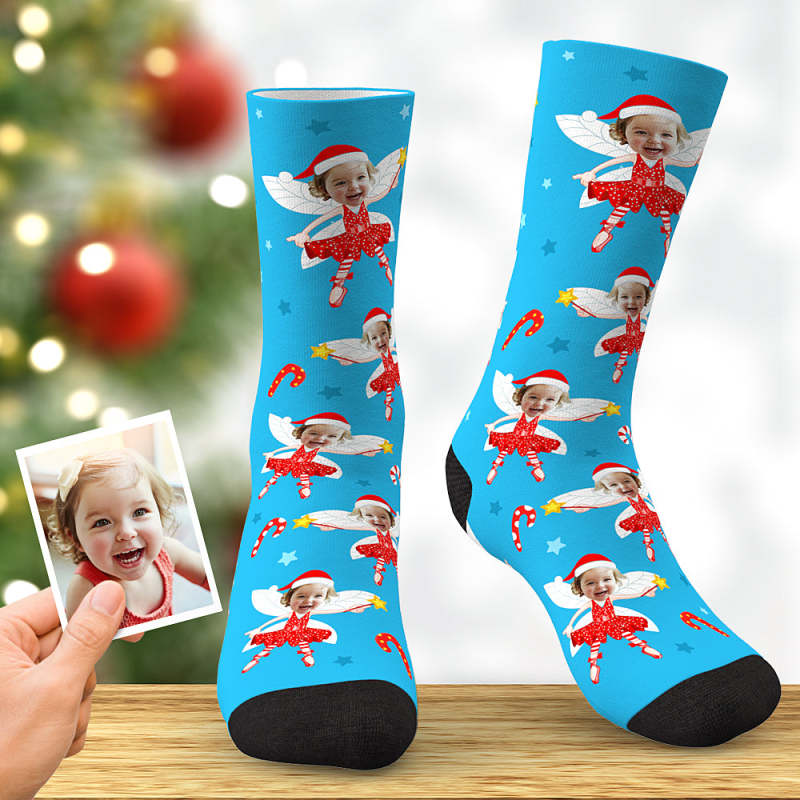 Custom Christmas Elf Sock Xmas Angel Custom Face Socks Best Christmas Gift