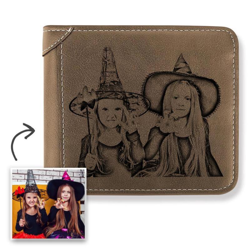 Halloween Gift | Men's Custom Engraved Photo Wallet Brown Leather