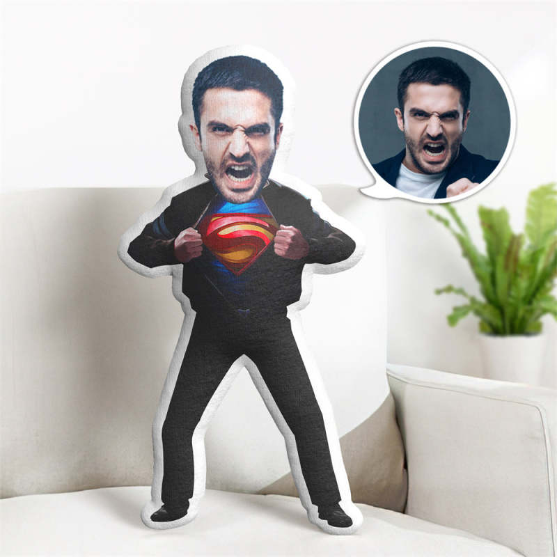 Gifts for Dad Cusotm Face Pillow Photo Superhero Doll Personalzied Superman in Life MiniMe Pillow Gifts for Him