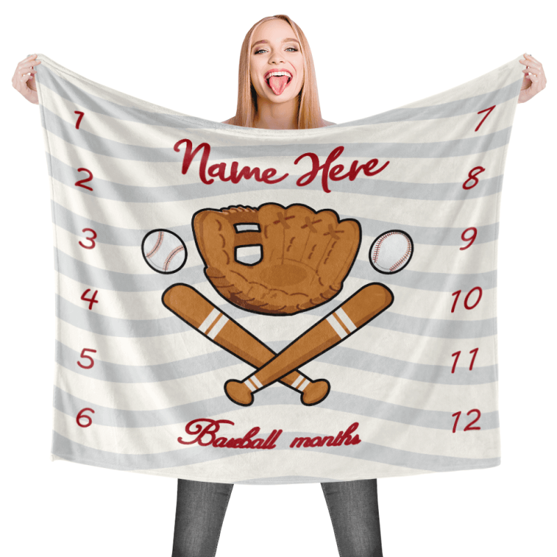 Custom Baby Blanket with Name Baseball Baby Milestone Blankets Personalised Swaddle Blankets Stroller Blanket