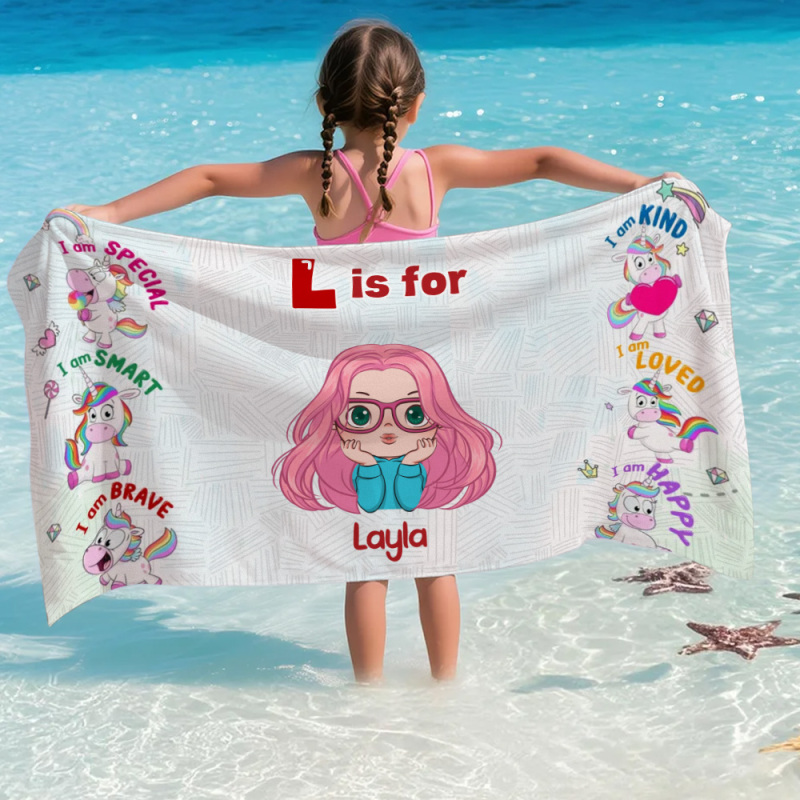 Custom Beach Towel of Dreams with Name Cartoon Summer Gift for Kid