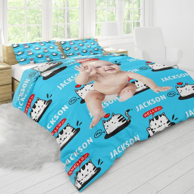 Polyester Fibre Custom Bedding Duvet Cover And Pillowcase Personalised Photo Text Duvet Cover And Pillowcase-The Cute Cat Duvet Cover And Pillowcase