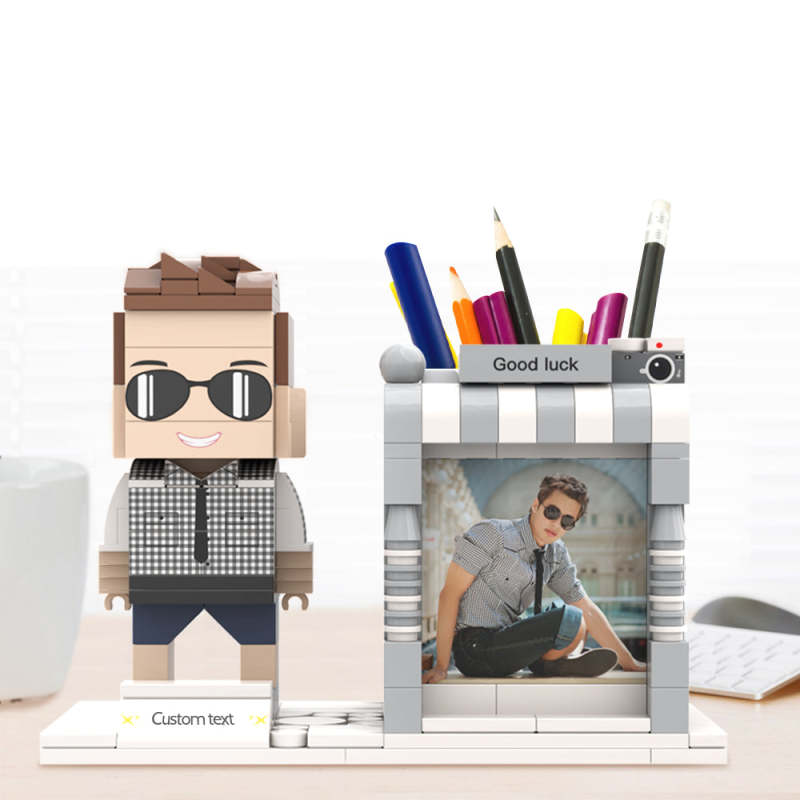 Custom Brick Figures Pen Holder Personalized Brick Figures and Pen Holder Custom Photo & Name Pen Holder