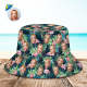 Custom Bucket Hat Personalized Face All Over Print Tropical Flower Print Hawaiian Fisherman Hat - Flamingo