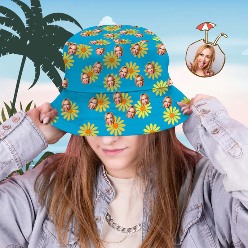 Custom Bucket Hat Personalized Face All Over Print Tropical Flower Print Hawaiian Fisherman Hat - Yellow Flowers