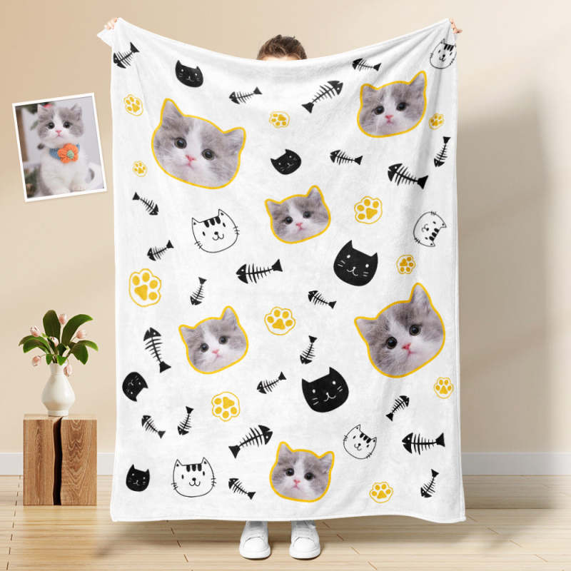 Custom Cat Face Blanket Cat's Head and Claw Personalized Pet Photo Yellow Blanket