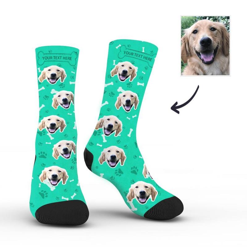 Personalised Socks Custom Photo Socks Dog Photo Socks With Your Text - Teal
