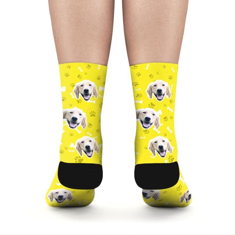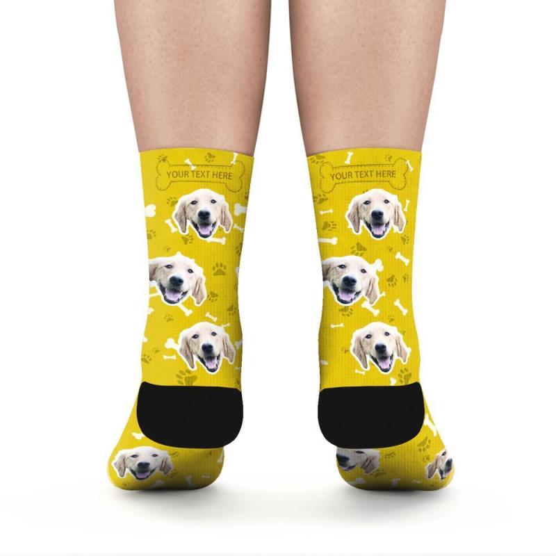 Personalised Socks Custom Photo Socks Dog Photo Socks With Your Text - Yellow