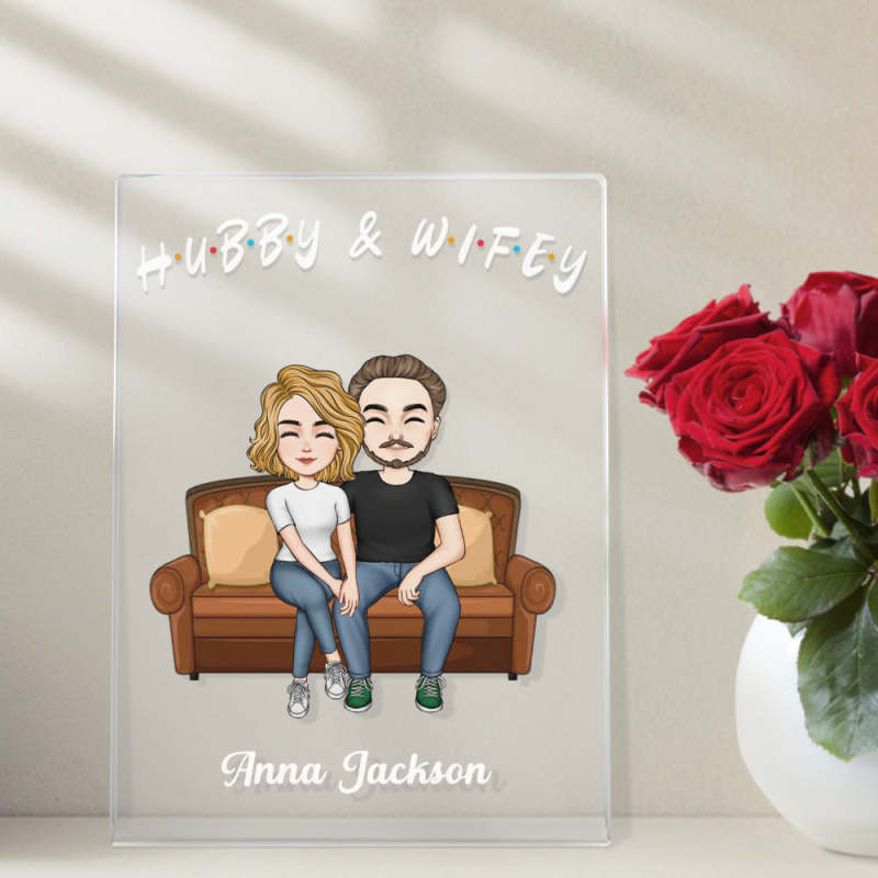 Custom Couple Personalized Hairstyle Clothes and Name Cartoon Plaque Lamp Gifts for Him