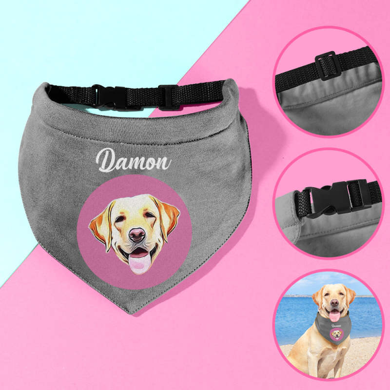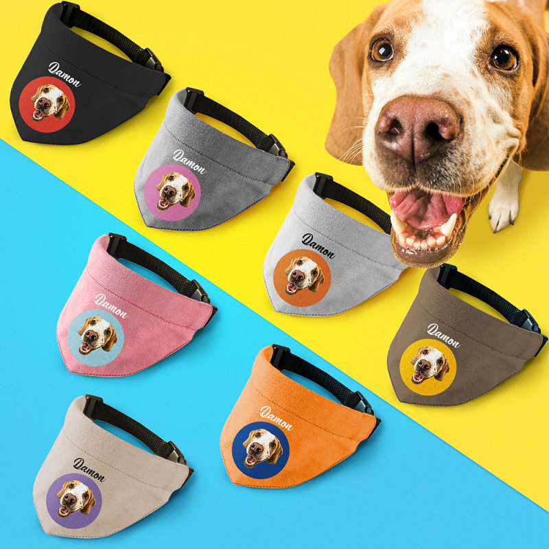 Personalised Photo Dog Bandana Custom Name Puppy Triangle Scarf