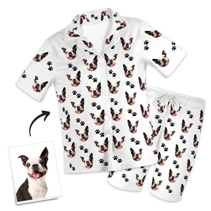 Custom Dog Face And Footprints Pajamas Personalised Photo Short Pajamas
