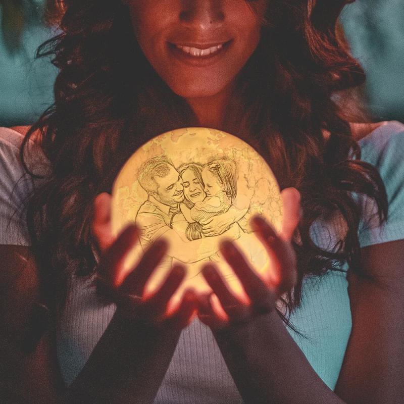 Custom Engraved 3D Printing Photo Earth Lamp 2 Light Colors