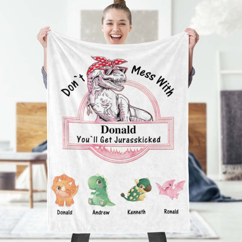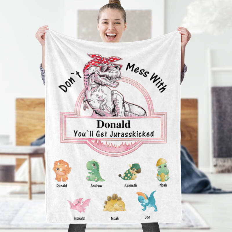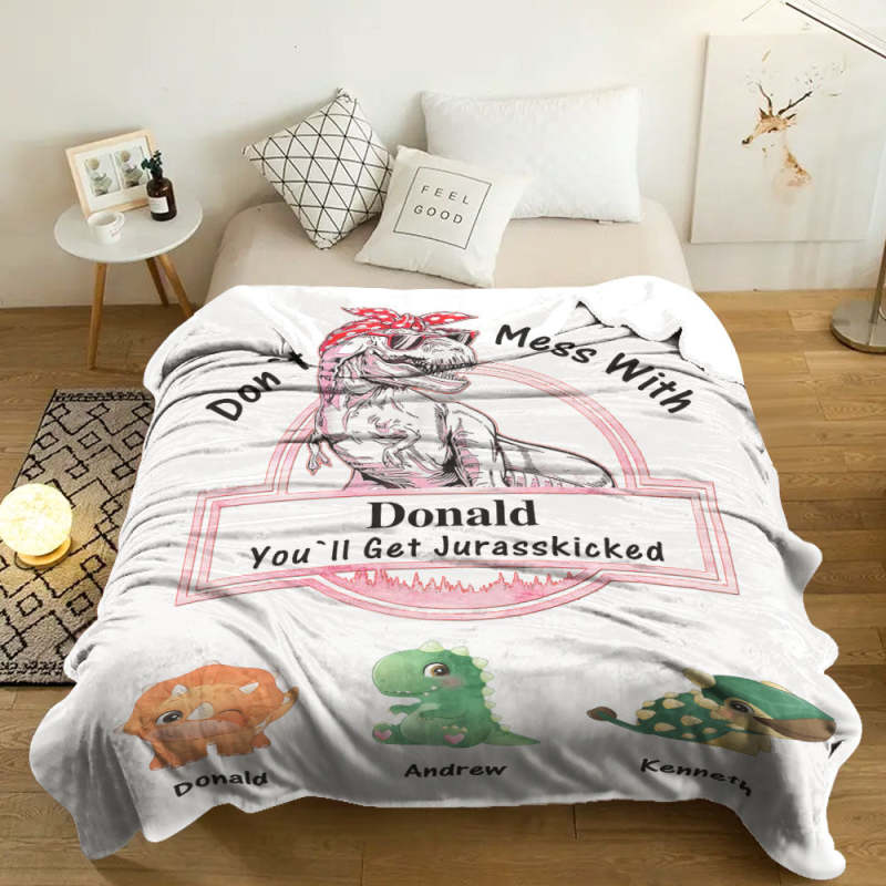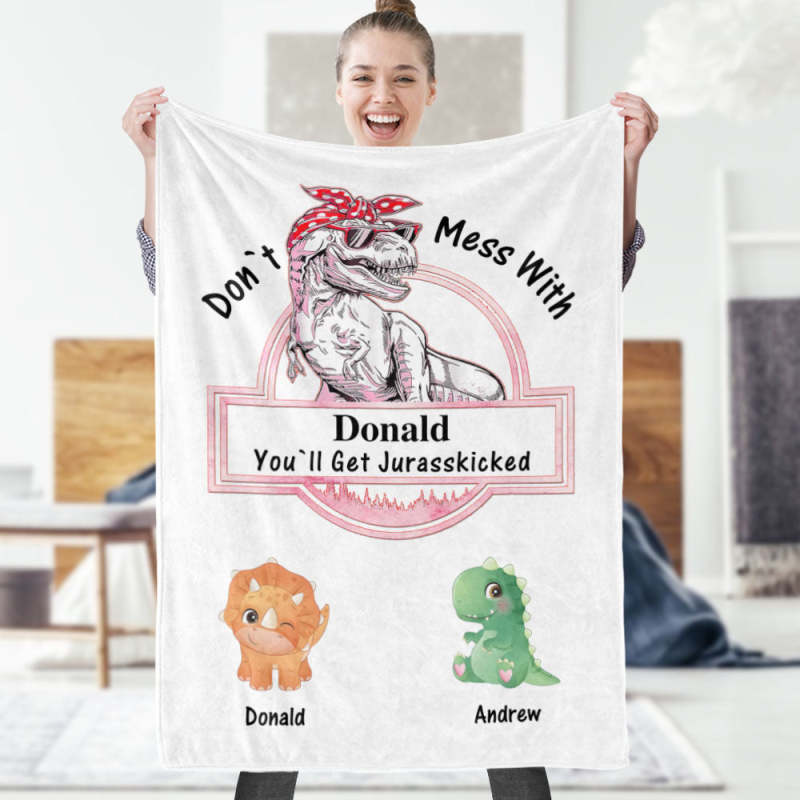 Custom Engraved Blanket Custom Dinosaurs Don't Mess With Mamasaurus Best Gift For Mother