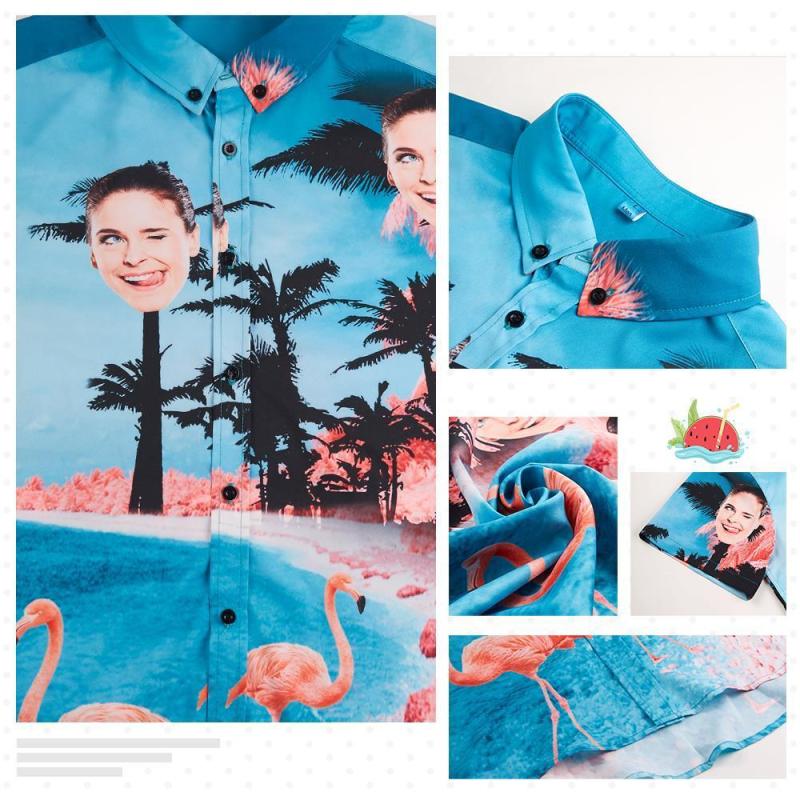 Custom Face Hawaiian Shirt All Over Print Flamingo Flowers And Leaves Custom Dog Photo Button up Shirts