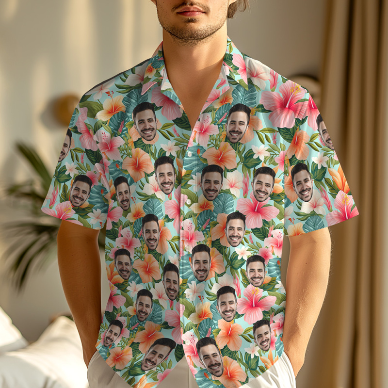 Custom Face Hawaiian Shirt Tropical Flowers Print Funny Personalized Summer Outfit