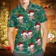 Custom Face Personalized Merry Christmas Hawaiian Shirt All Over Print Leaves