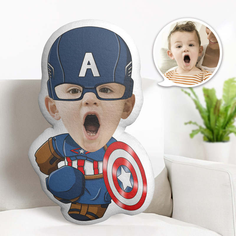 Custom Face Pillow Personalized Photo Pillow Q Version Captain America MiniMe Pillow Gifts for Kids