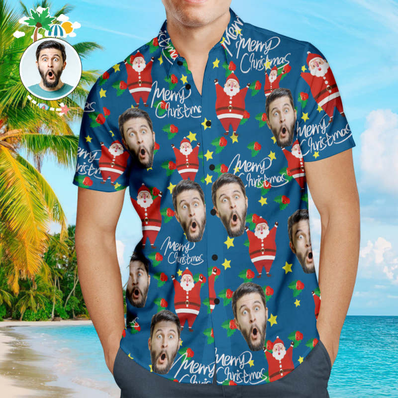Custom Face Shirt Personalized Photo Men's Hawaiian Shirt Christmas Gift - Happy Santa