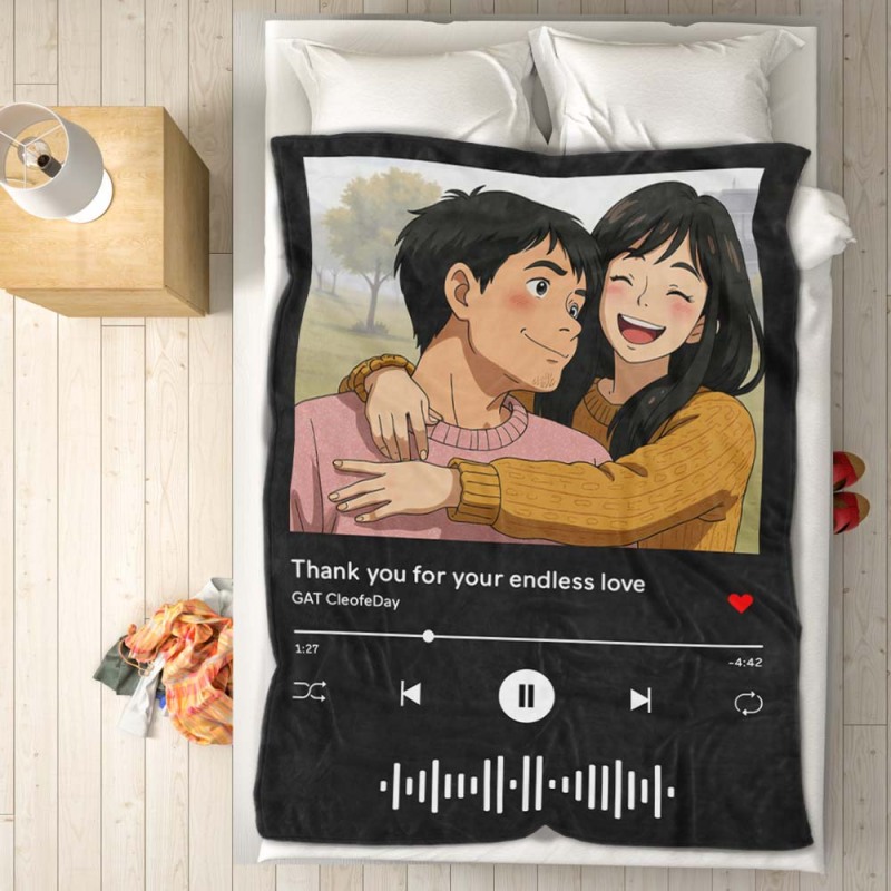 Custom Music Blanket Photo Ghibli Style Portrait Blanket