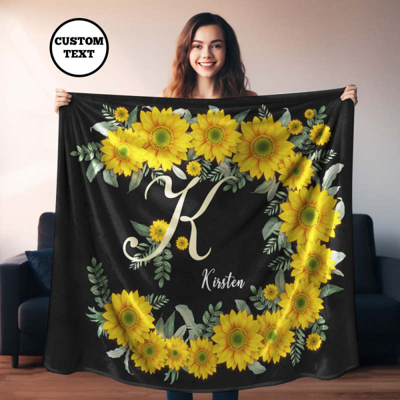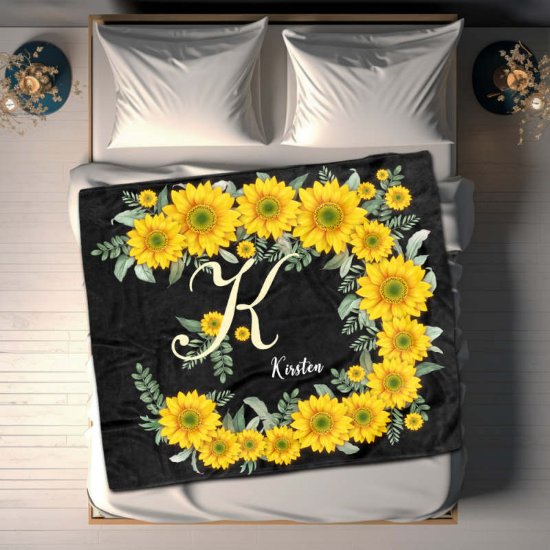 Custom Name Blanket Sunflower Black Blanket