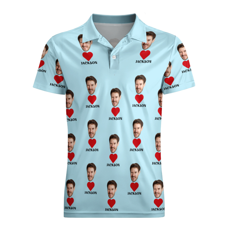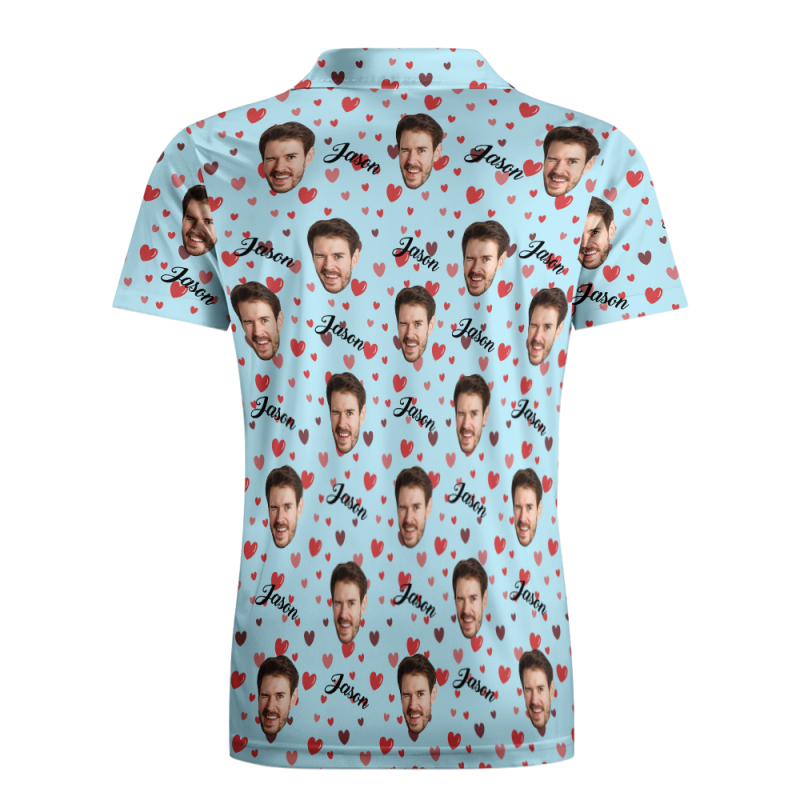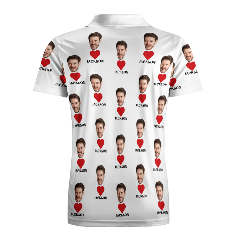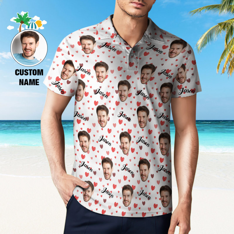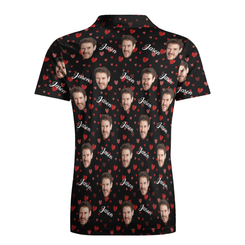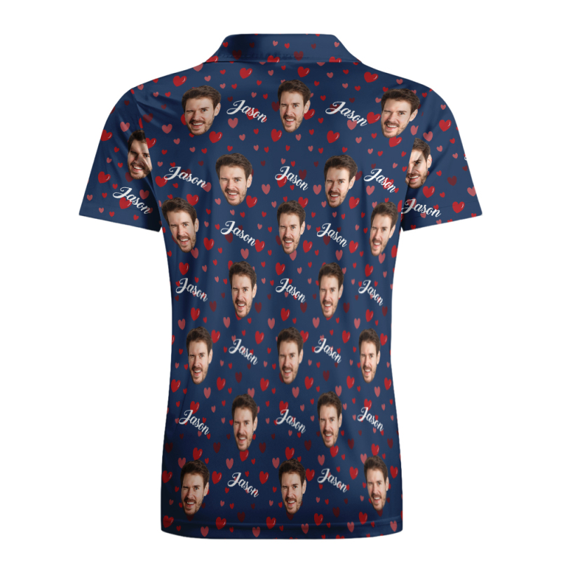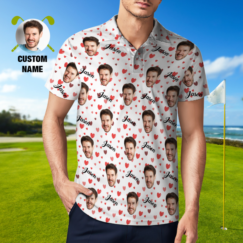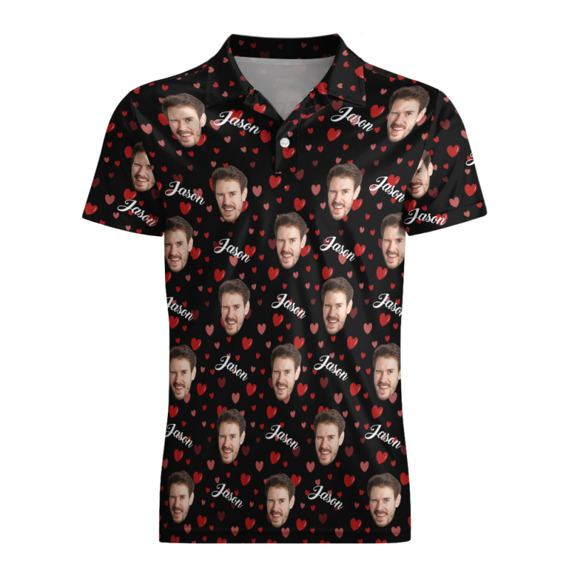 Custom Name Polo Shirt Personalized Hearts Short Sleeve Golf Shirt with Picture Logo Custom Polos for Men
