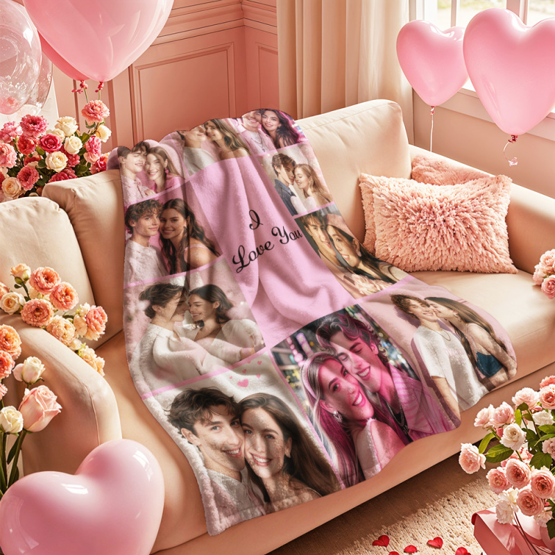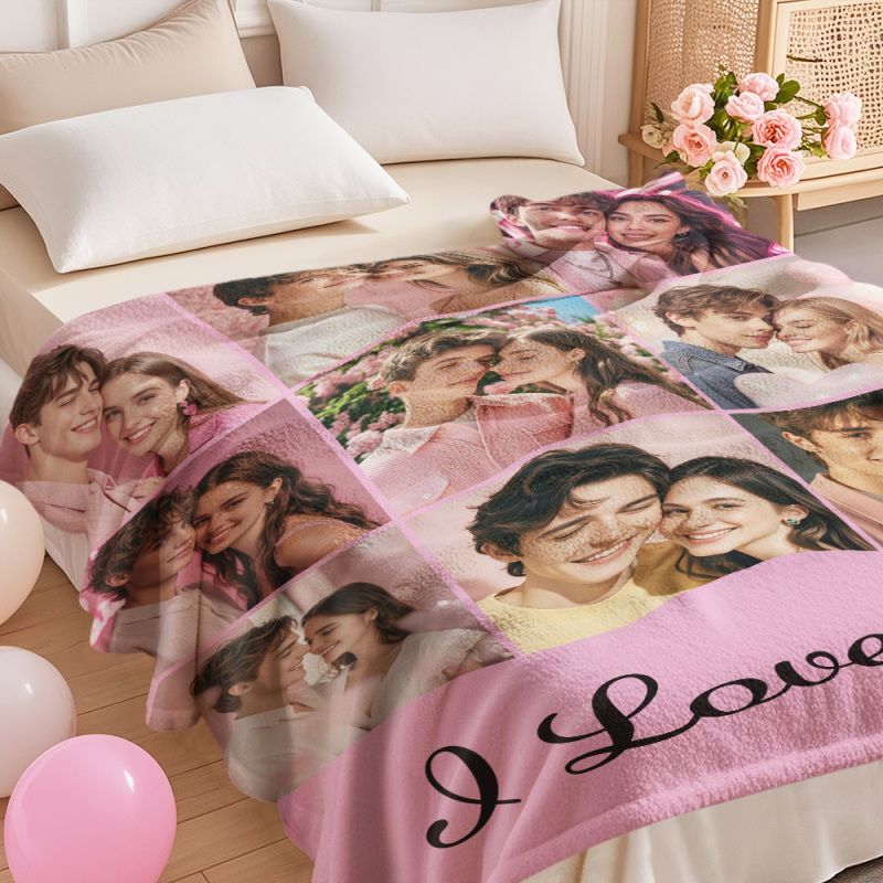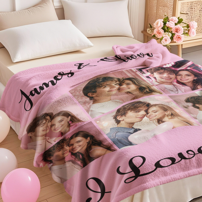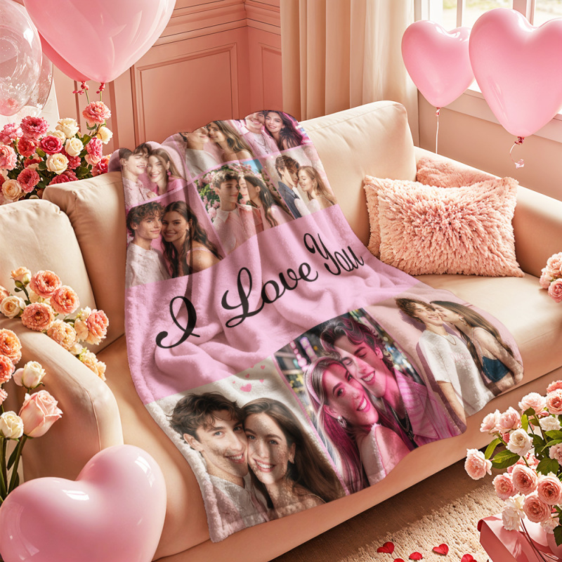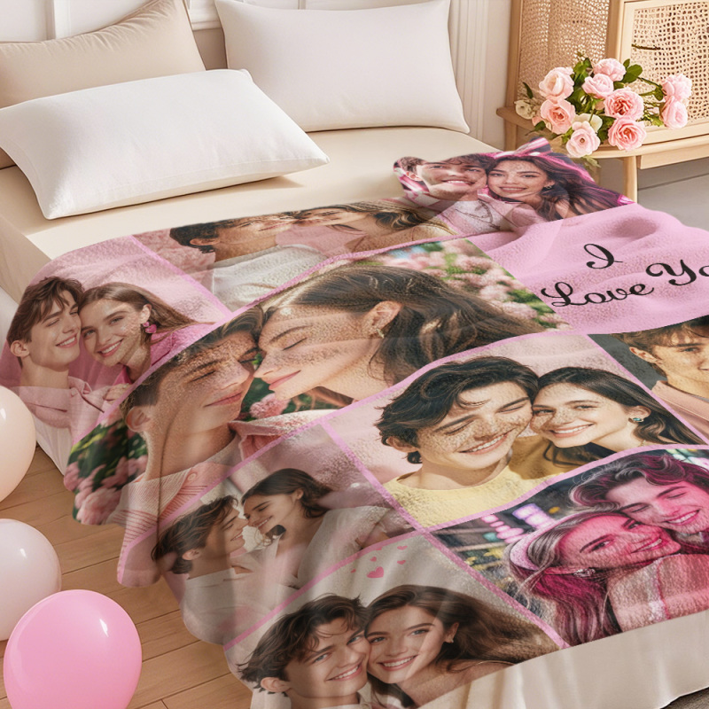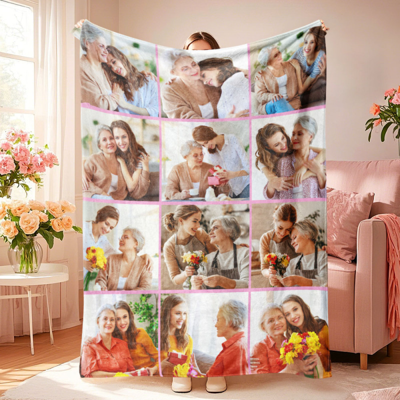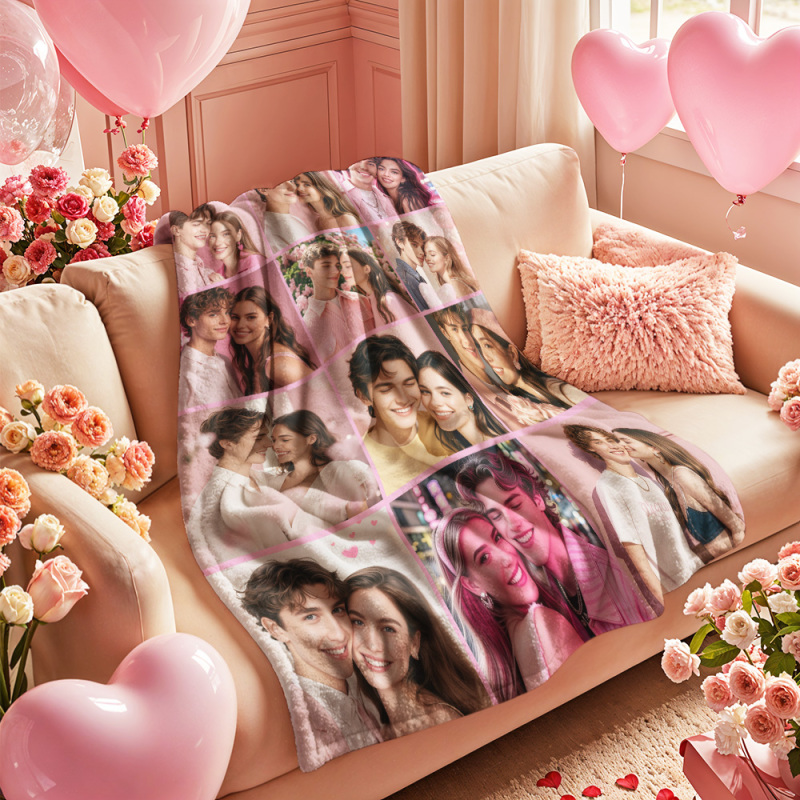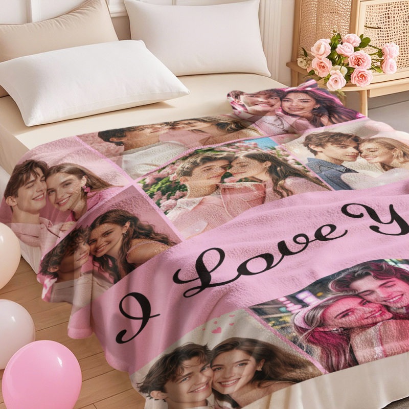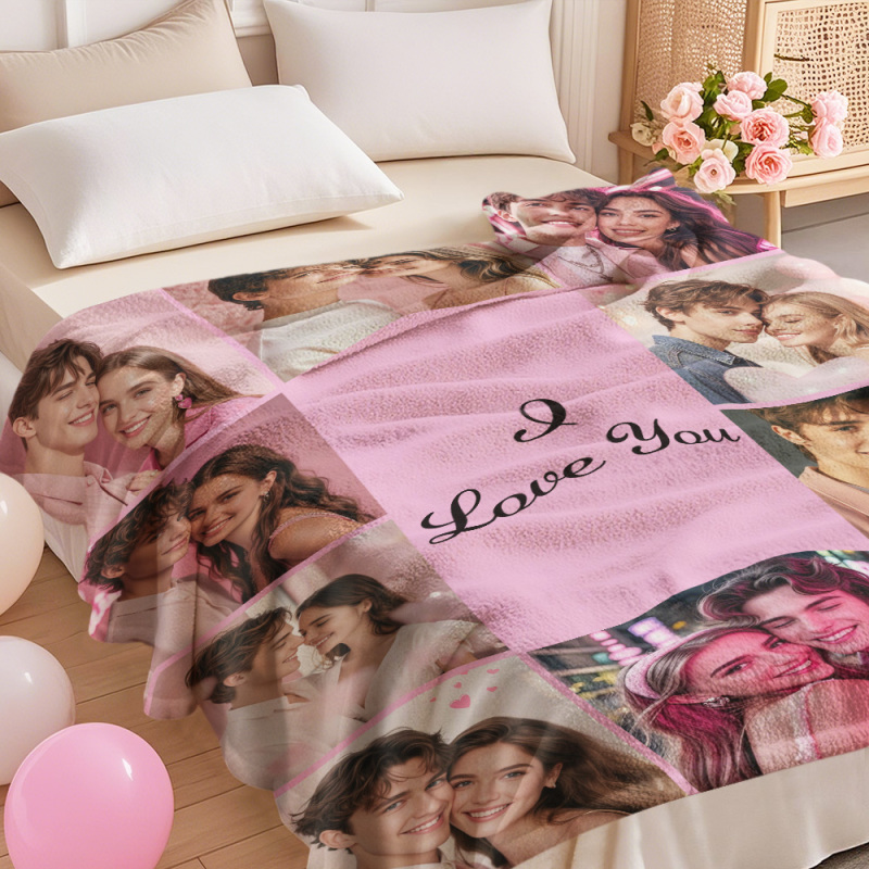 Custom Photo Blanket Collage Personalized Multiple Photos with Text Blanket
