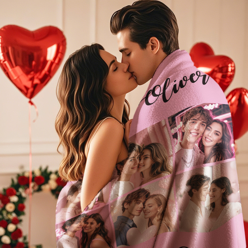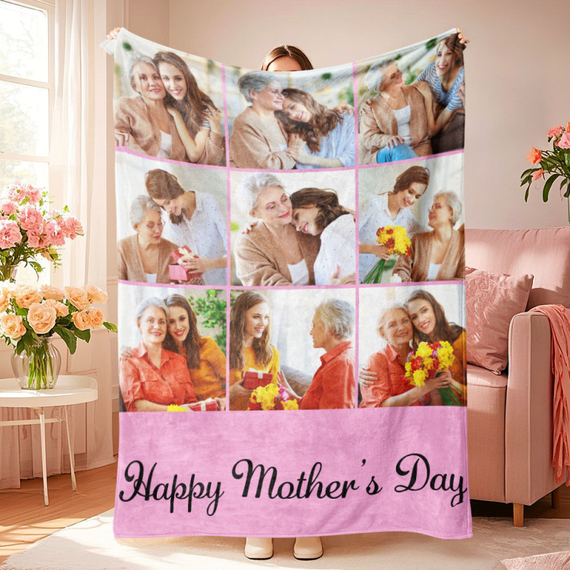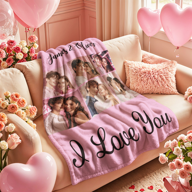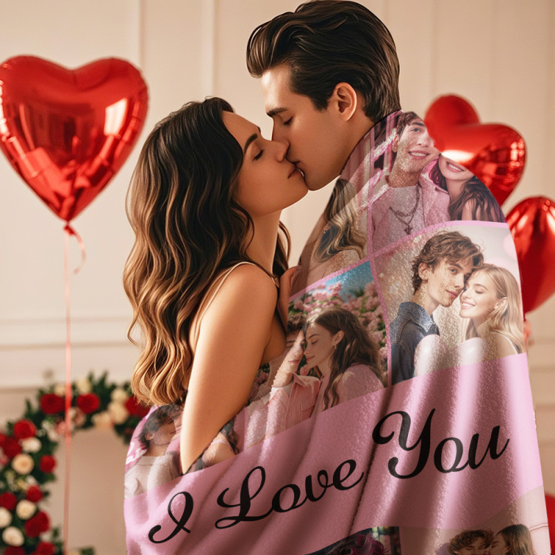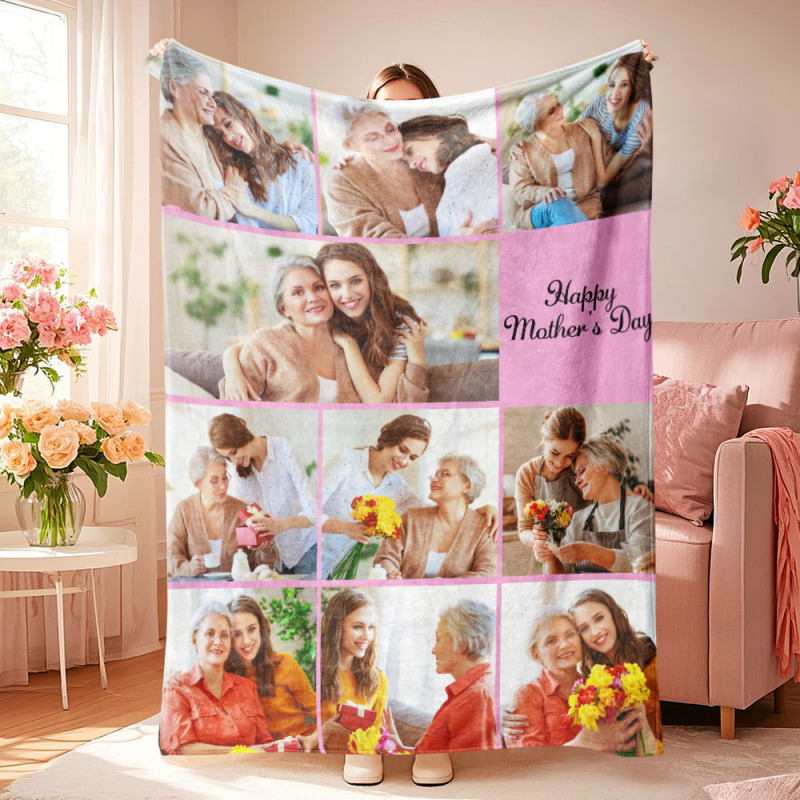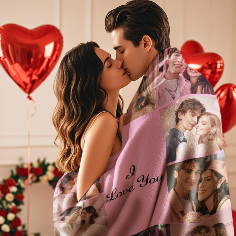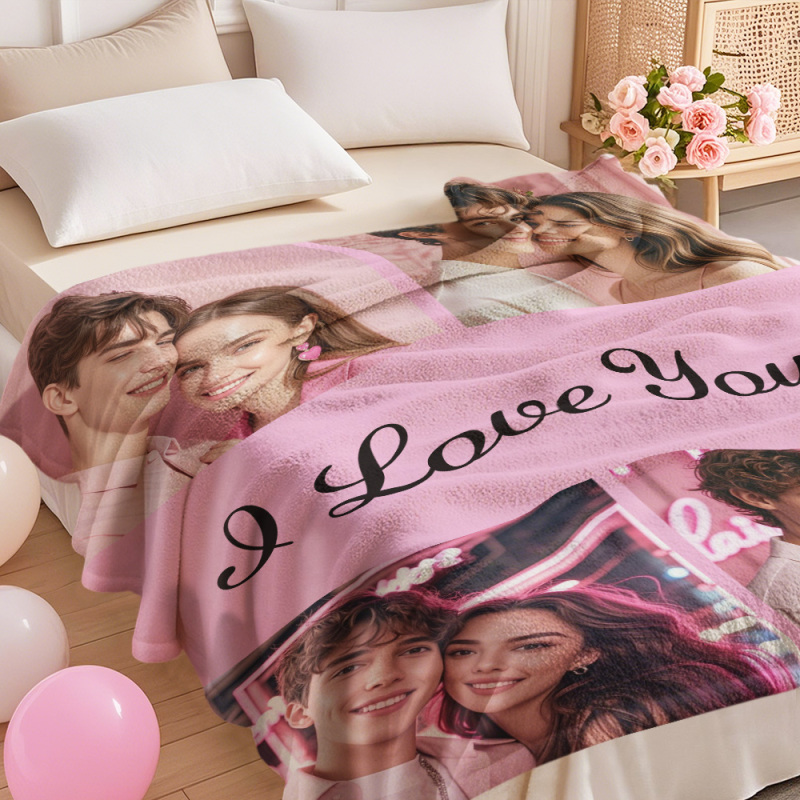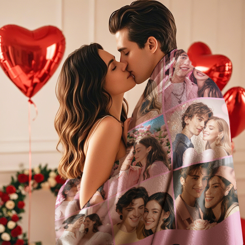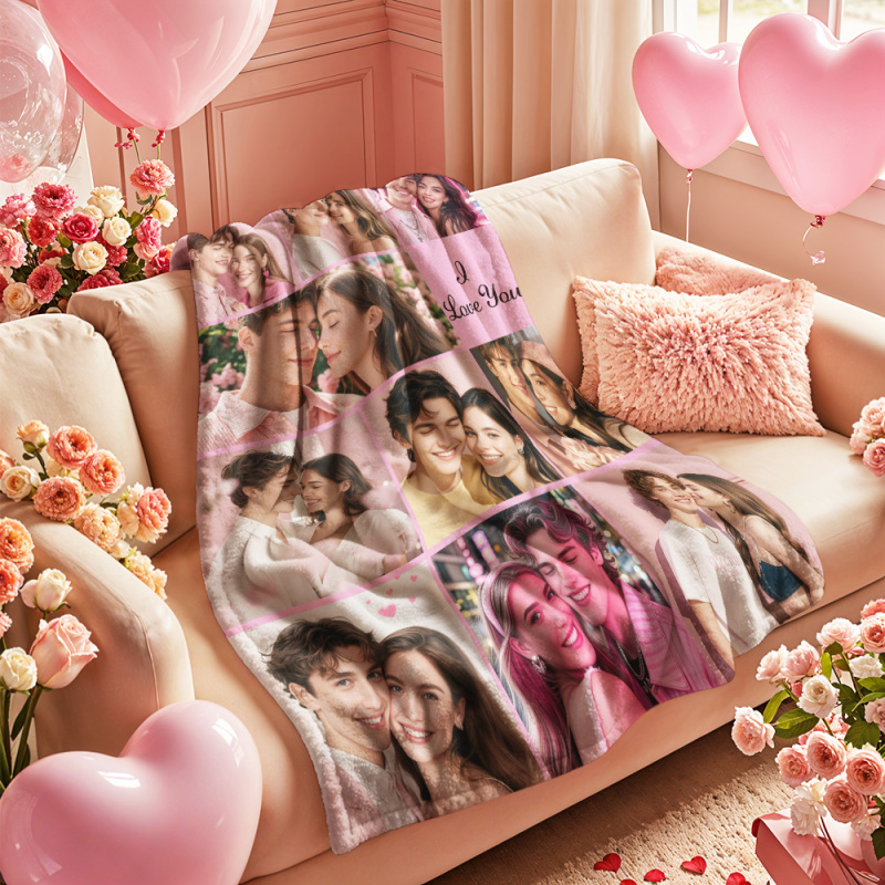 Custom Photo Blanket Collage Personalized Multiple Photos with Text Blanket