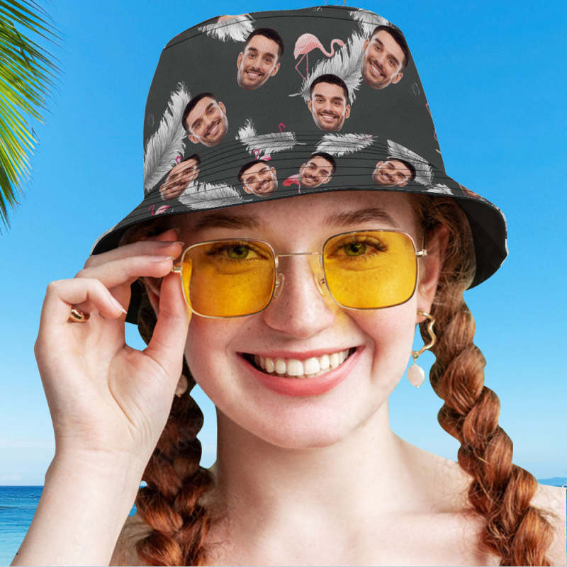 Custom Photo Gift Funny Cartoon Flamingo Bucket Hat Hawaiian Fisherman Hat