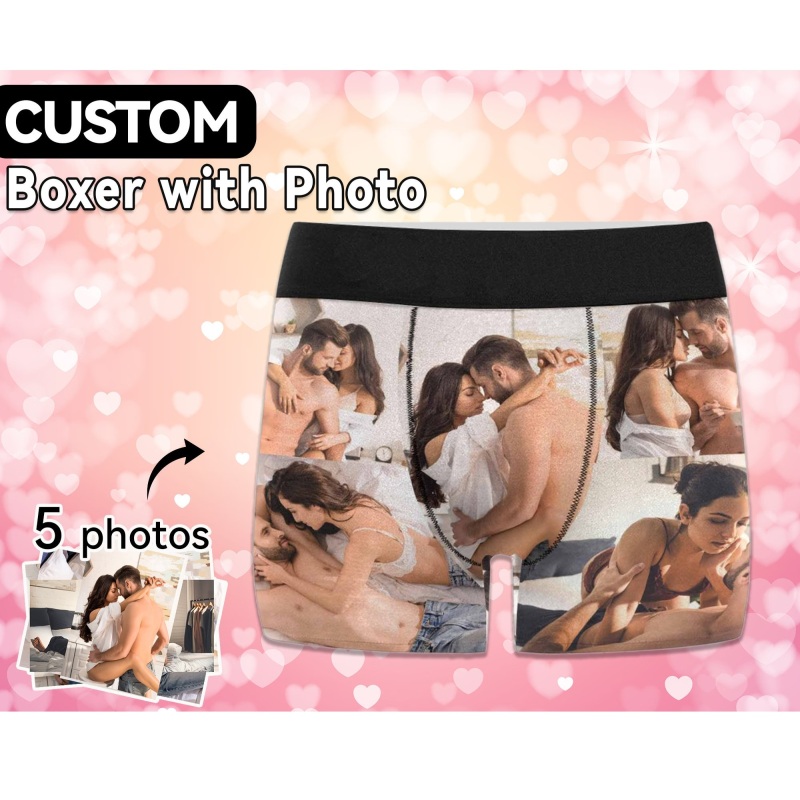 Custom Photos Boxers Personalized Boxer with Love Picture Funny Custom Underwear Anniversary Valentine Christmas Gift for Boyfriend/Husband