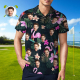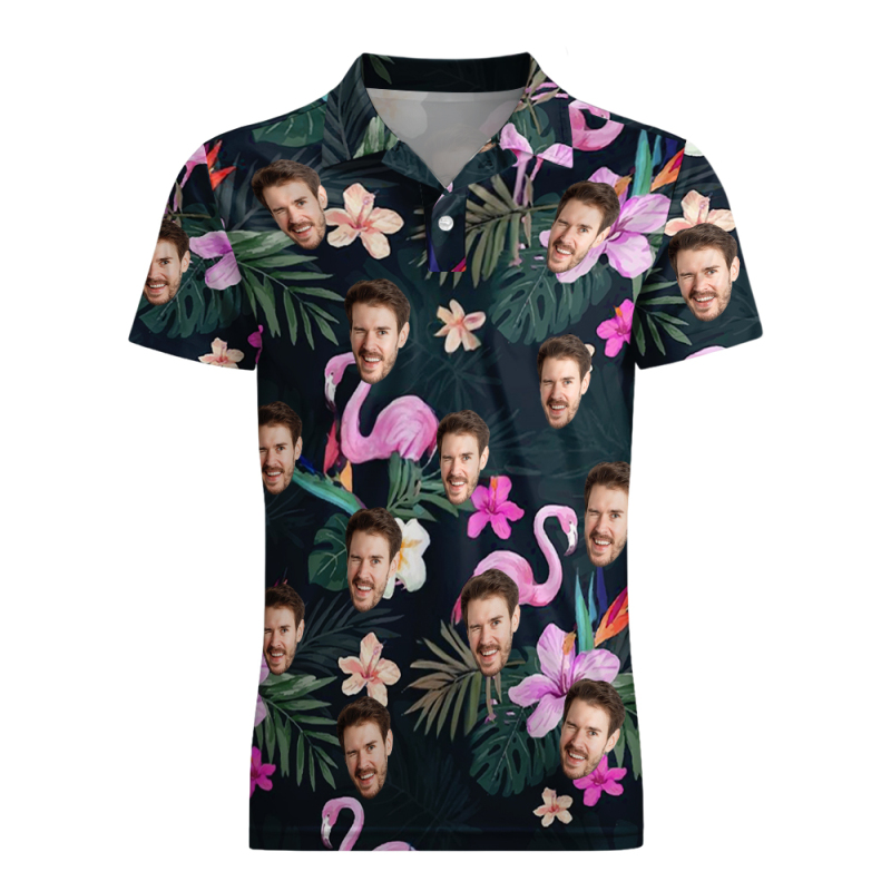 Custom Polo Shirt with Face Personalized Logo Flamingo Pink Flower Polo Shirt for Men Gift for Him