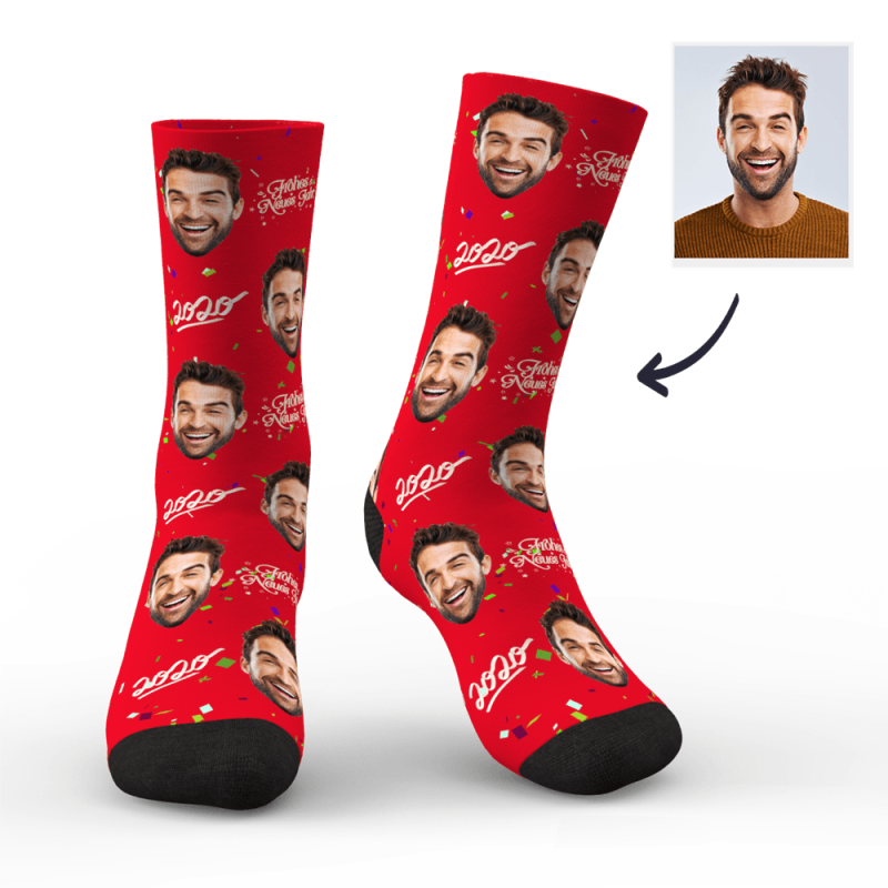Custom Print Face On Cheer Socks 2020 Frohes neues Jahr