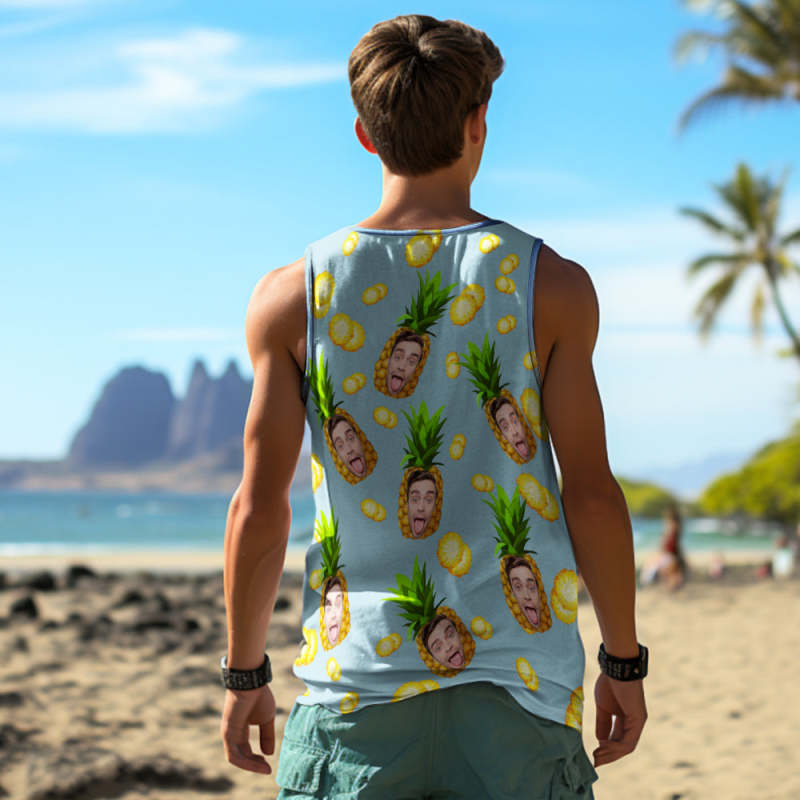 Custom Thick Face Tank Tops Men's Sleeveless Shirt Big Pineapple