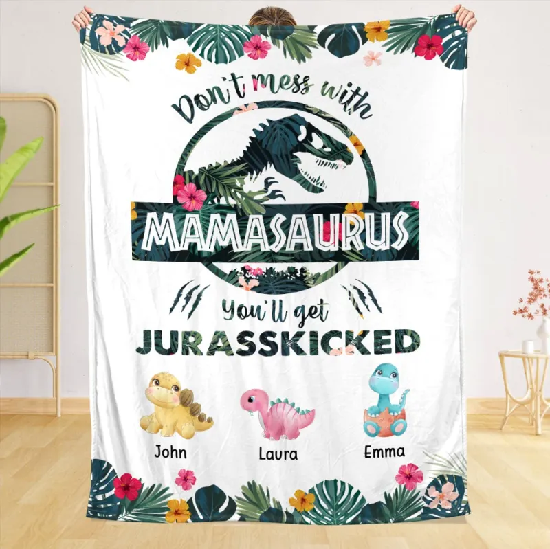 Don't Mess With Mamasaurus Tropical - Personalized Blanket - Best Gift For Mother