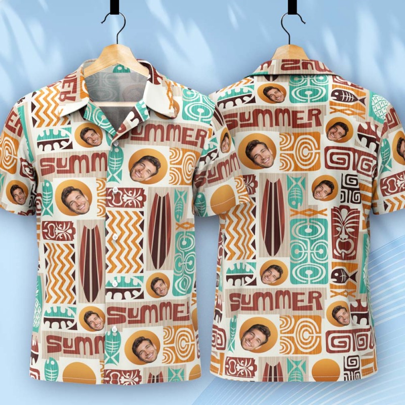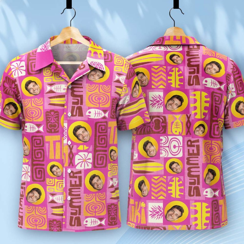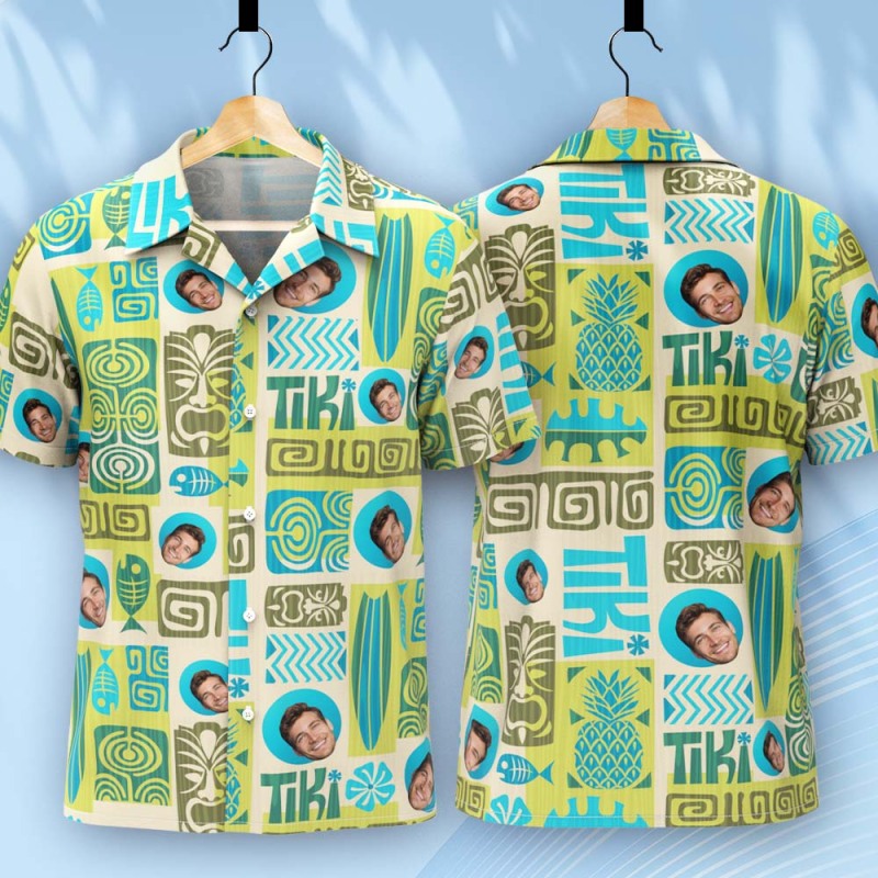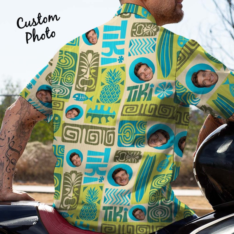 Father Custom Face With Exotic Tiki Pattern Personalized Photo Hawaiian Shirt
