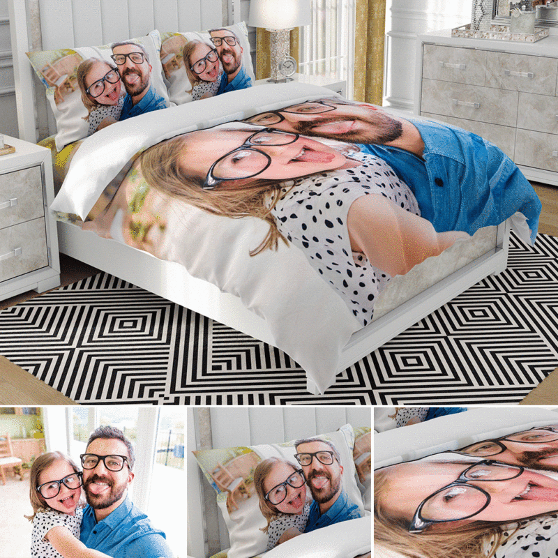 Custom Bedding Set With Photo Personalized Three-Piece Photo Duvet Cover Photo Quilt Cover & Pillowcases