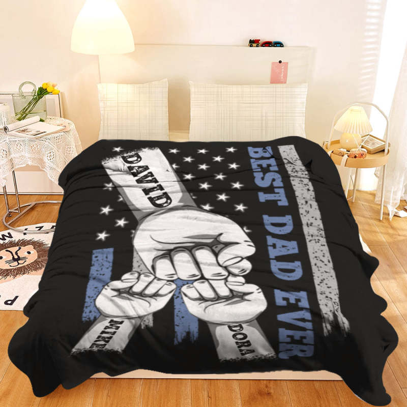 Personalized Blanket Custom Fists Father and Kids Name Blanket Father's Day Gift