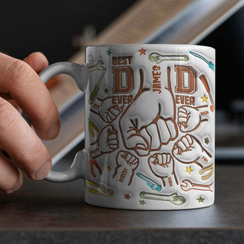 Gifts for Dad Personalized Names Custom 1-6 Kids 3D Inflated Effect Printed Mug Happy Father's Day