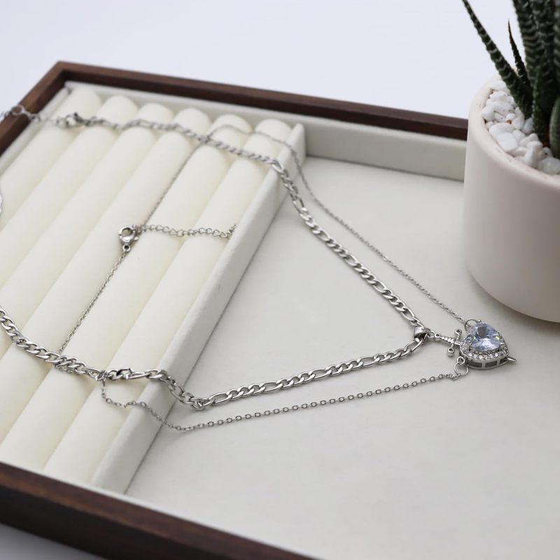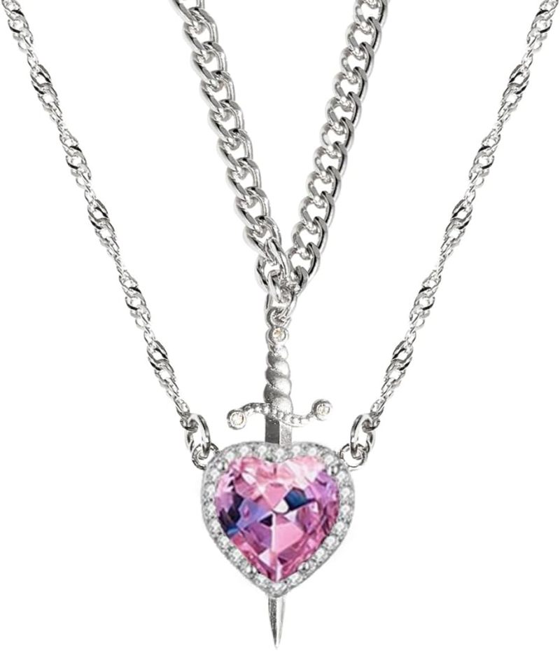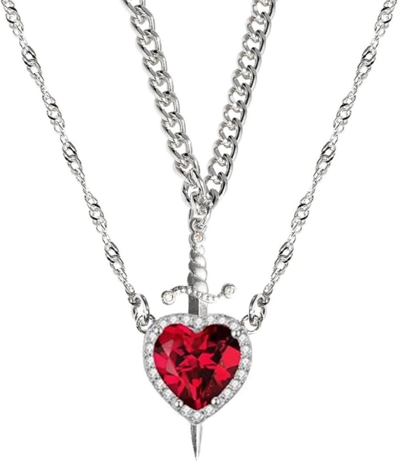 Heart Sword Necklace For Couples Stainless Steel Twist Water Wave Chain Cuban Chain Dainty Trendy Matching Sword And Heart Necklace Set Jewelry Gift