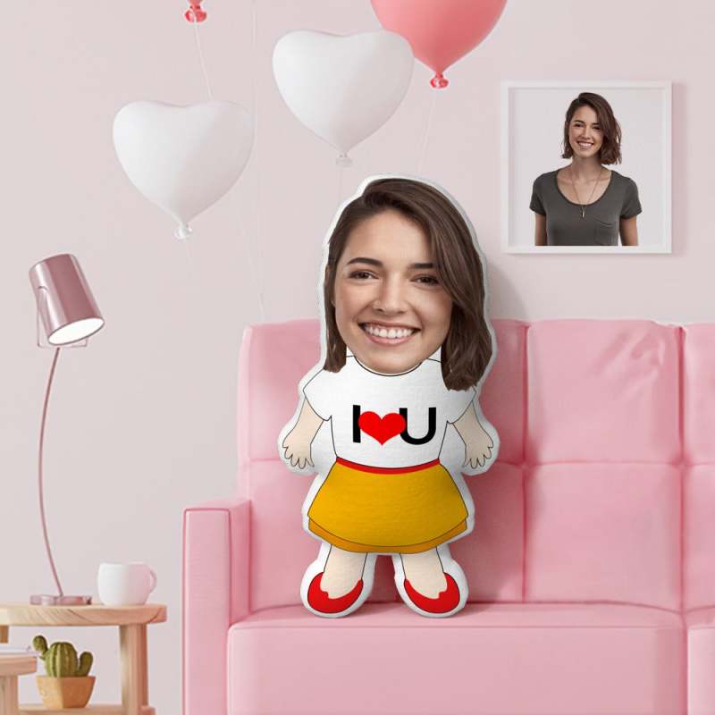 I LOVE U Pillow Custom Face Pillow Personalized Photo Pillow Female Magician Doll Custom MinIMe Pillow