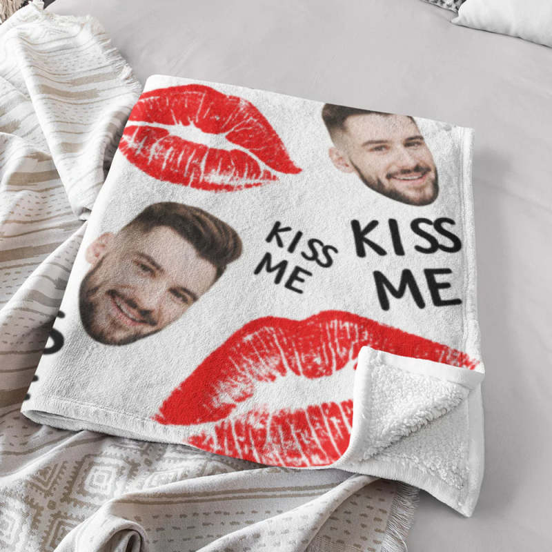 KISS ME Custom Face Blanket Personalized Photo Blanket Best Valentine's Day Gifts for Him