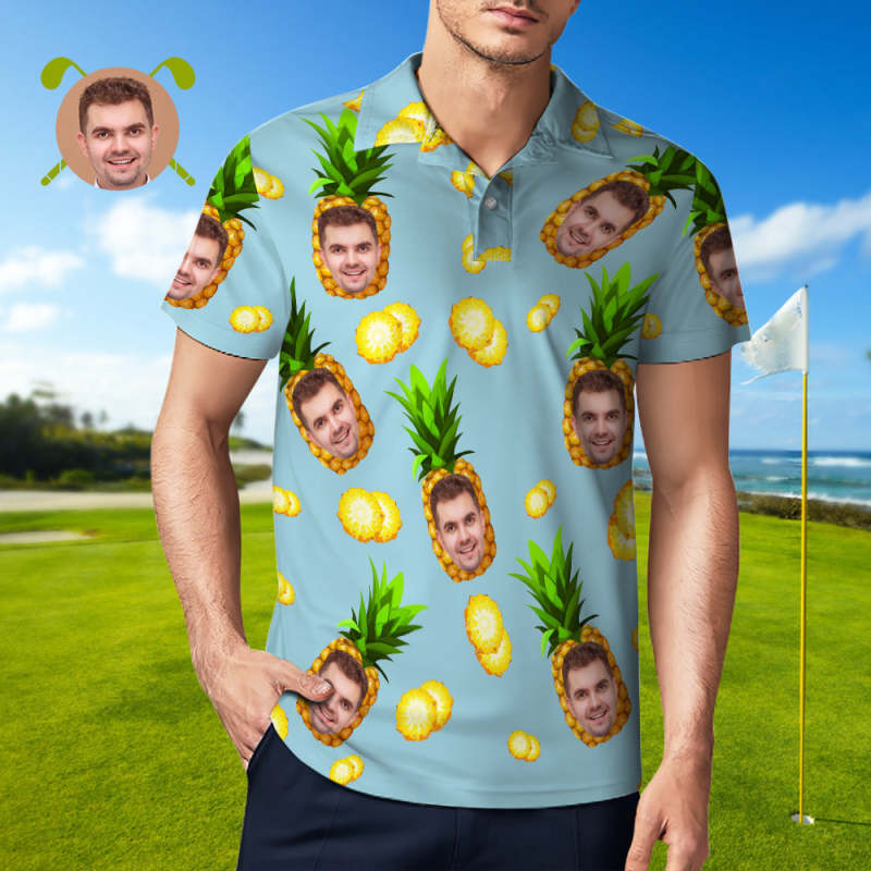 Men's Custom Face POLO Shirt Personalized Golf Shirts For Him Big Pineapple