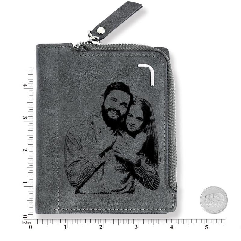 Men's Custom Photo Engraved Bifold Zipper Wallet For Best Daddy - Grey