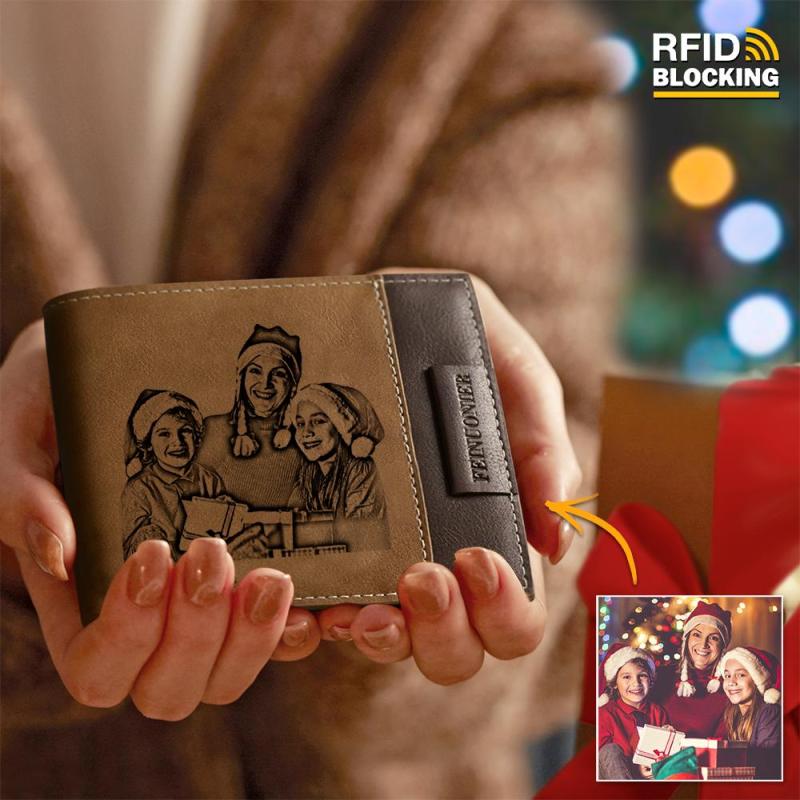 Men's Custom Photo Engraved Wallet RFID Blocking Wallet Brown