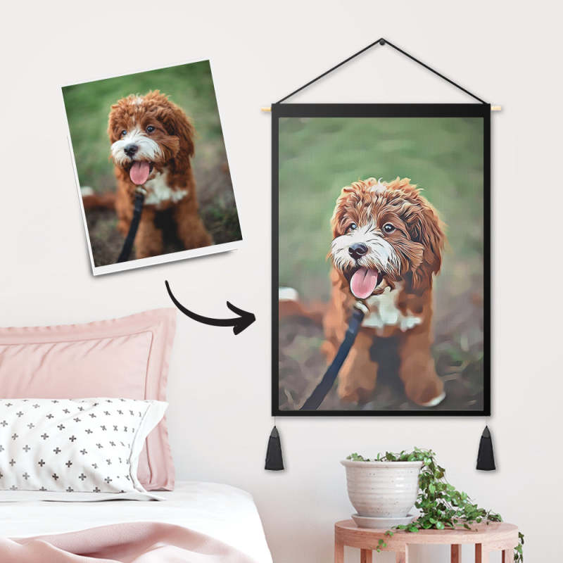 Personalised Dog Photo Tapestry - Wall Decor Hanging Fabric Painting Art Portrait Hanger Frame Poster
