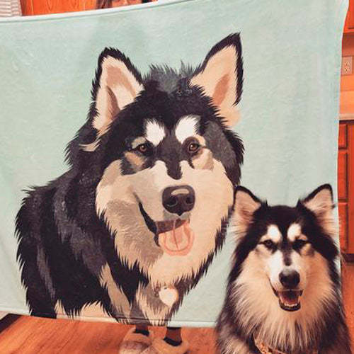 Custom Dog Blankets Personalised Pet Photo Blankets Painted Art Portrait Fleece Blanket