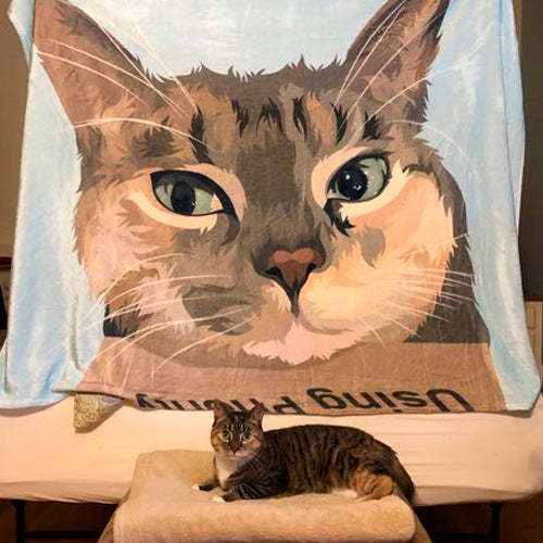 Custom Blanket With Your Cat Personalised Pet Photo Blankets Painted Art Portrait Fleece Blanket